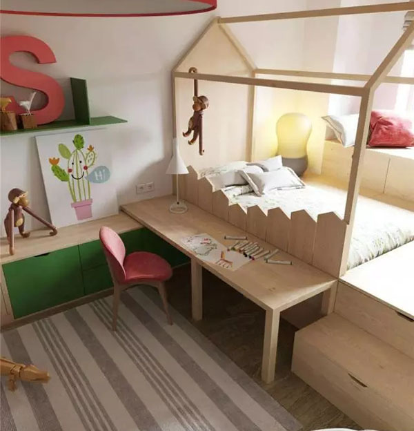 我們正常買房子,就算是小戶型,也會希望能夠買到有兩間房的,一個是自己住,一個是孩子住,但是小戶型最大的問題,就是收納空間的不足,所以選擇把次臥改成榻榻米加書房的設計,既方便孩子以后做作業,也能夠多出一個儲物空間來!