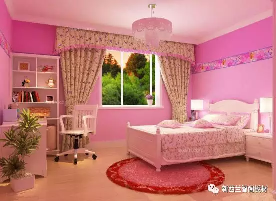 女孩子的房間相對于男孩子在配色上更適合暖色,如紅色、粉色等。這樣更容易營造出小公主的姿態(tài)。